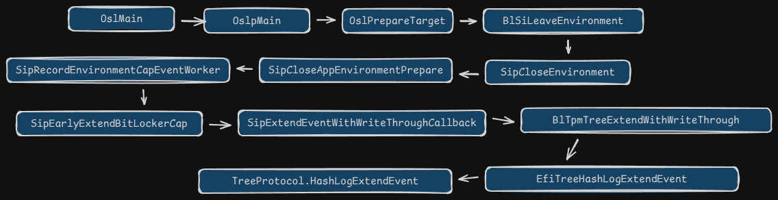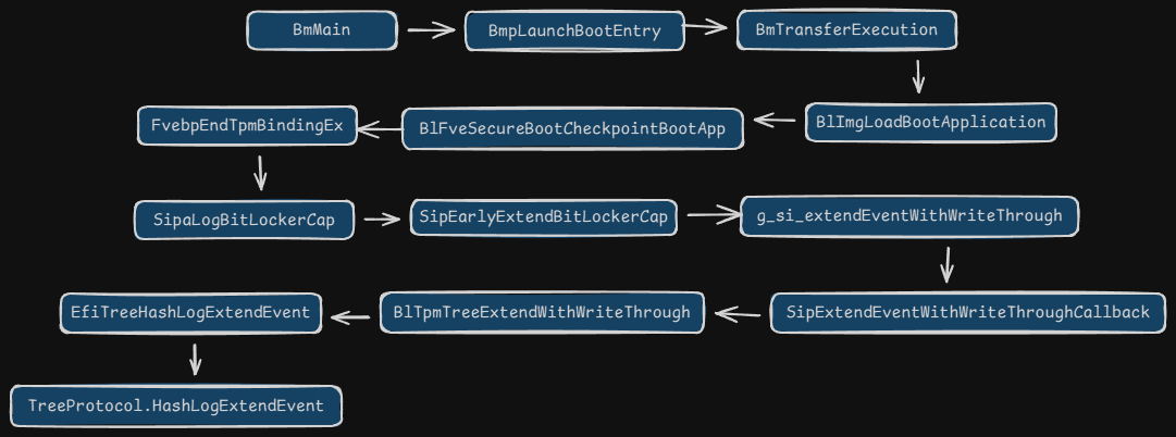 首次扩展PCR11的值在bootmgfw.efi中,分析得到调用顺序如下:
