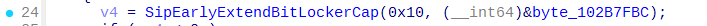 在函数SipEarlyExtendBitLockerCap中,第一个参数0x10就是本次计算PCR11 SHA256的哈希值原数据,共计算4个字节,即: 10 00 00 00