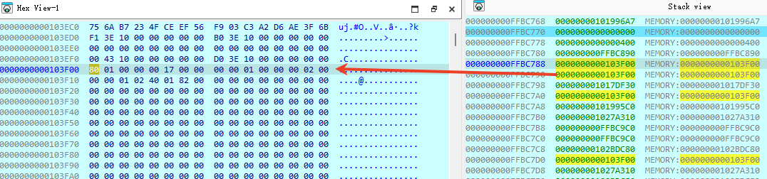 下图是按Ctrl + F7执行到函数返回时的参数a5,即TPM命令执行后的响应数据。