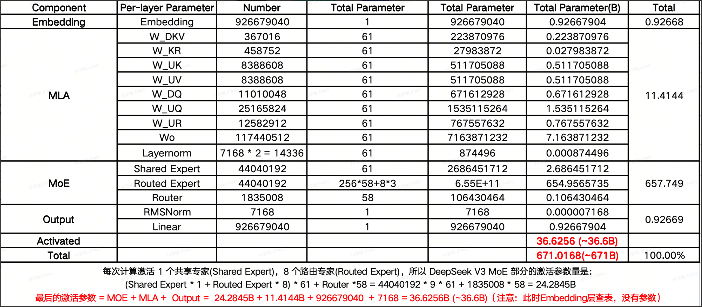 讨论性能之前,我们来看一下DeepSeek的参数的组成: