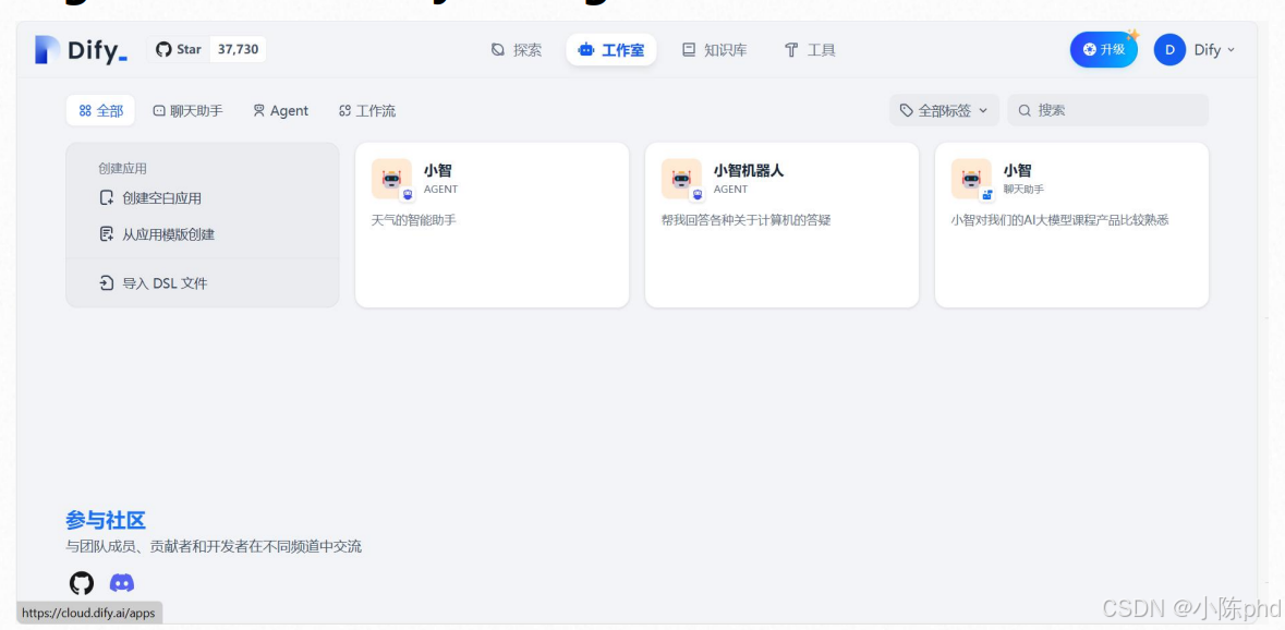 Dify的优势在于"低代码+平台化支持",无需编写复杂代码,通过界面操作即可完成Agent构建: