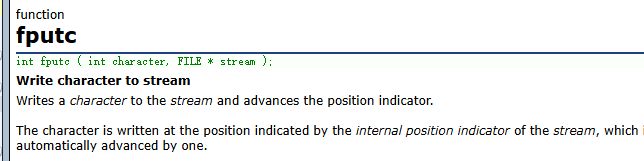 int fputc ( int character, FILE * stream );