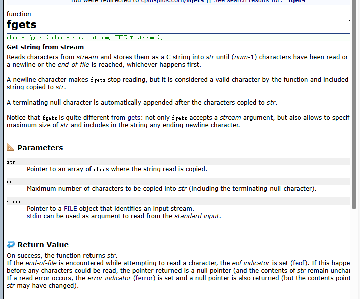读取成功返回str的首地址,读取到文件末尾或失败返回NULL