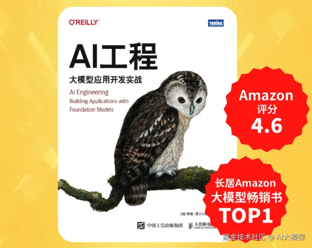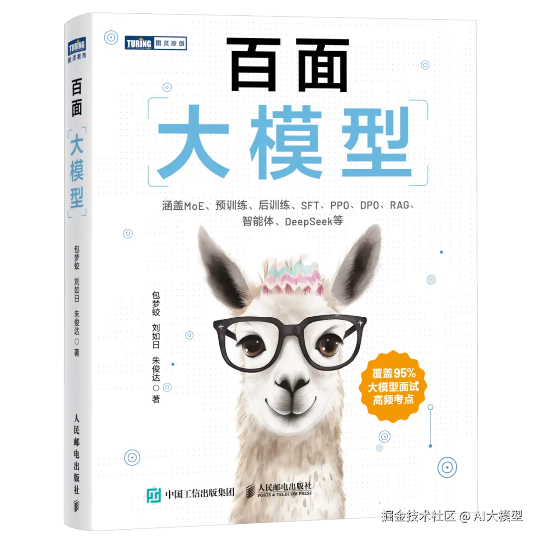 沙特\] 杰伊·阿拉马尔,\[荷\] 马尔滕·格鲁滕多斯特 \| 著 李博杰 \| 译 备受关注的大模型"袋鼠书",全书通过 300 幅全彩插图,以极致视觉化的方式呈现大模型的核心原理与工程实现,覆盖从底层机制、应用开发到性能优化的完整链条。内容结合真实数据集、实用项目与典型场景,注重实操性。 特别收录 18 幅图精解 DeepSeek 底层原理,紧跟前沿。配套资源包括一键运行代码、200 道大模型面试题及大量拓展视频/文章资料,助你全面掌握大模型理论与实践,是入门进阶与求职备战的理想之选。  《从零构建大模型》 塞巴斯蒂安·拉施卡|著 覃立波,冯骁骋,刘乾|译 豆瓣评分 9.5,从零开始构建大模型的最佳指南,由畅销书作家塞巴斯蒂安•拉施卡撰写,通过清晰的文字、图表和实例,逐步指导读者创建自己的大模型。在本书中,读者将学习如何规划和编写大模型的各个组成部分、为大模型训练准备适当的数据集、进行通用语料库的预训练,以及定制特定任务的微调。 **应用开发与框架实战**  由业内知名AI专家、前英伟达工程师,畅销书作者 Chip Huyen 撰写。 全书系统阐述了"AI工程"的核心方法------如何基于现成的基础模型(LLM、LMM)构建高效、实用的AI应用。书中提供了完整的 AI 工程框架,涵盖模型选择与评估、提示工程、RAG 与智能体、微调策略、数据集工程、推理优化及 AI 工程架构等关键环节,帮助开发者在复杂的 AI 生态中做出科学的技术决策。 **大模型求职面试**  《百面大模型》 包梦蛟,刘如日,朱俊达 \| 著 本书按"二星到五星"难度体系,精选约 100 道大模型面试高频真题,覆盖 MoE、预训练、SFT、PEFT、RLHF、DPO、RAG、智能体等核心考点,配套题目目录,便于高效查漏补缺。 由 AI 领域大 V"包包大人"领衔,美团技术专家与北航新生代强强联合编写,内容专业权威。获 ACL Fellow 刘群、周明,《深度强化学习》作者王树森和黎彧君等 8 位业内大咖联合推荐,是大模型求职者的实战宝典。 ## 学习资源推荐 如果你想更深入地学习大模型,以下是一些非常有价值的学习资源,这些资源将帮助你从不同角度学习大模型,提升你的实践能力。 > 本文较长,建议点赞收藏。更多AI大模型应用开发学习视频及资料,在[智泊AI](https://link.juejin.cn?target=https%3A%2F%2Fhy.zhipoai.cn%2F "https://hy.zhipoai.cn/")。