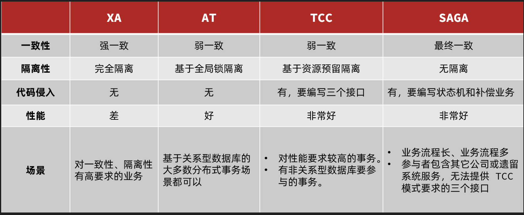 - XA模式一阶段不提交事务,锁定资源;AT模式一阶段直接提交,不锁定资源,性能好。