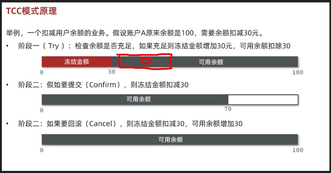 - Cancel:预留资源释放,可以理解为try的反向操作。
