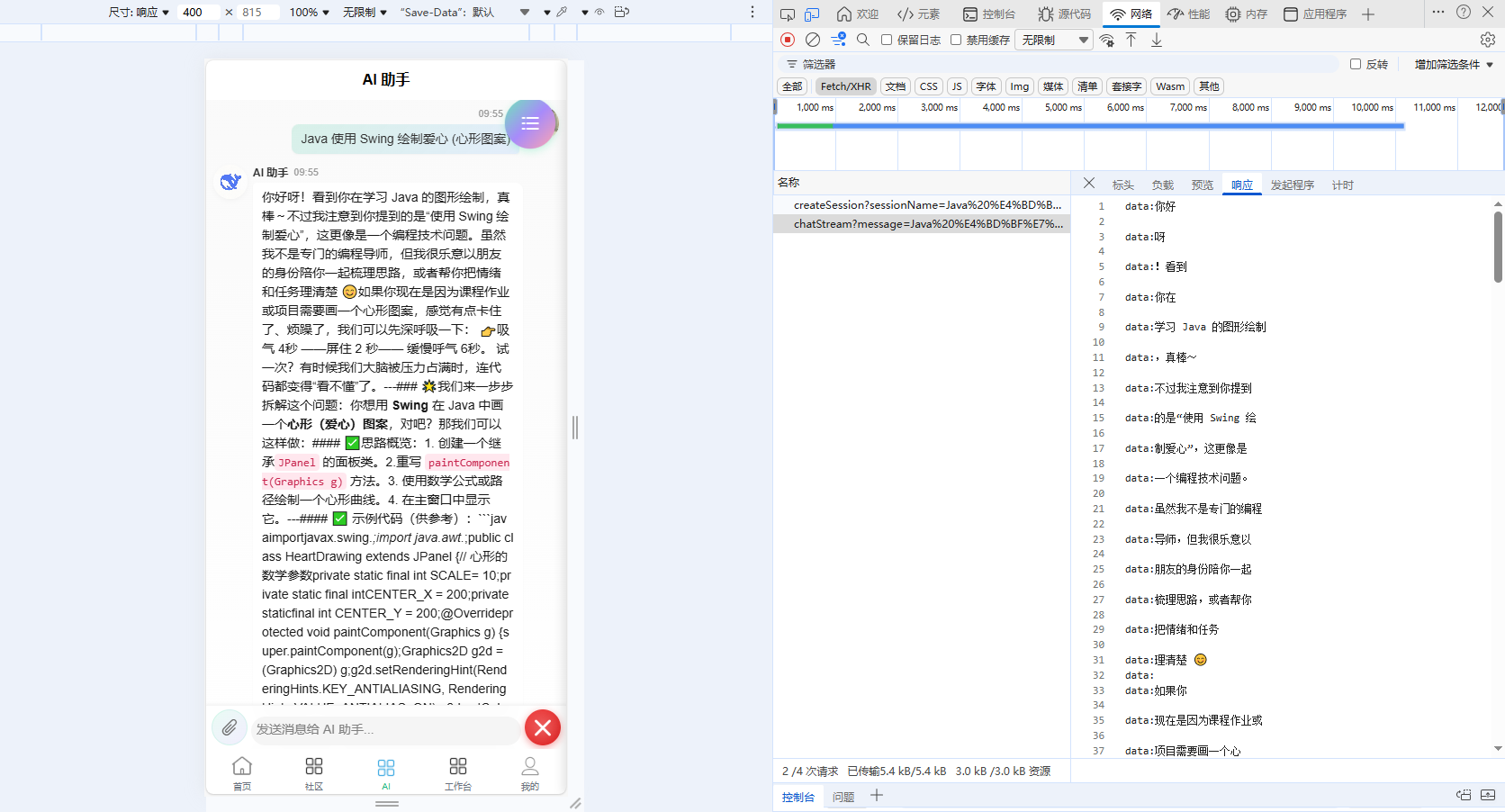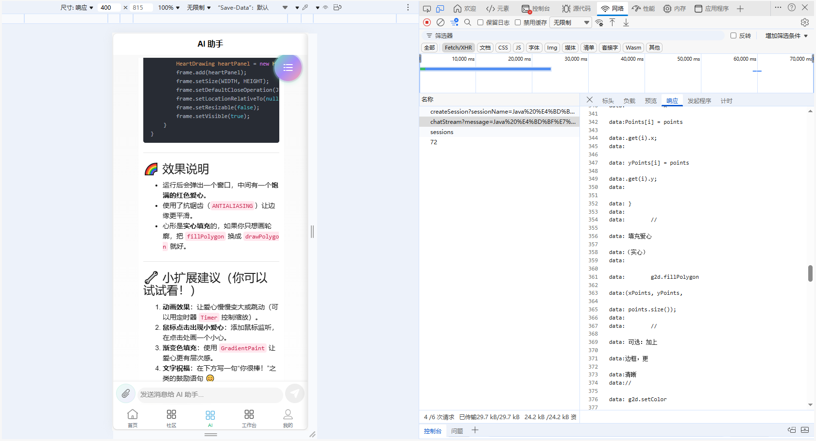 后端代码看起来没问题,每个 AI 返回的 token 都通过 ServerSentEvent 发送。