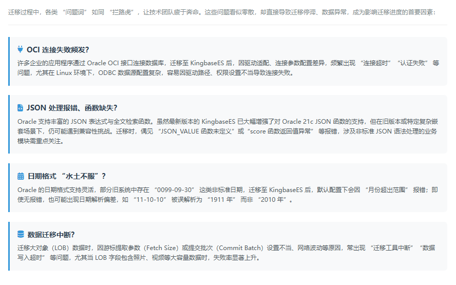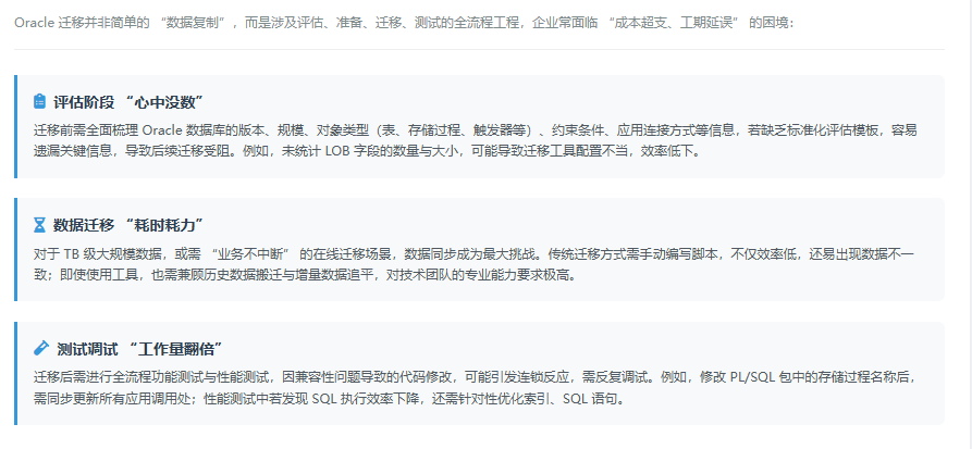 二、Oracle 迁移三大核心痛点拆解:每一步都暗藏 "绊脚石"