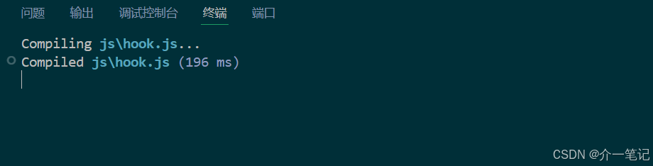 同前面几个章节的步骤,通过命令npm run watch编译 hook 脚本。