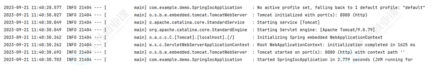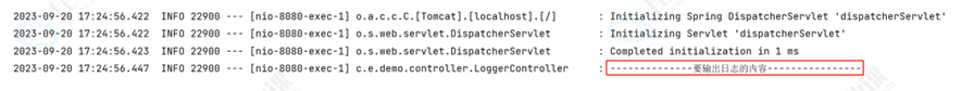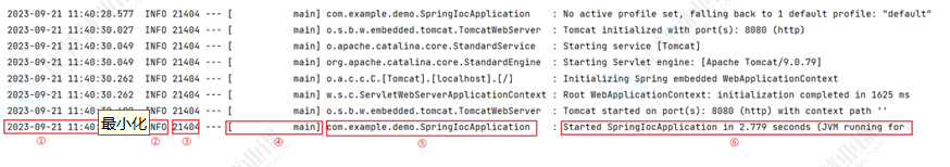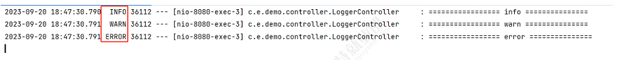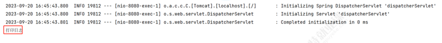 可以看到,我们通过 System.out.print 打印的⽇志,⽐SpringBoot 打印的⽇志缺少了很多信息