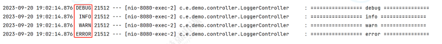 • INFO:普通信息,⽤于记录应⽤程序正常运⾏时的⼀些信息,例如系统启动完成、请求处理完成等.