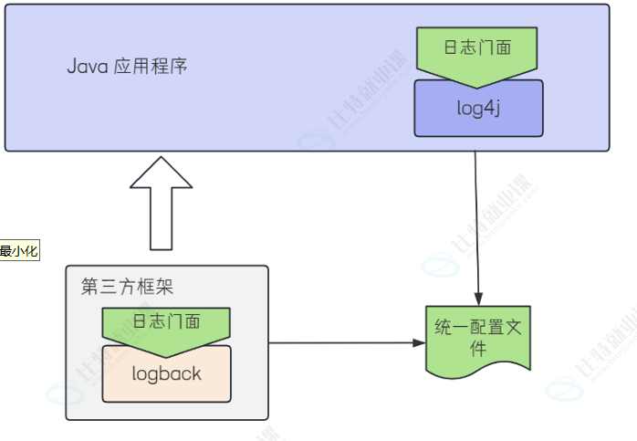引⼊⻔⾯⽇志框架之后,应⽤程序和⽇志框架(框架的具体实现)之间有了统⼀的API接⼝(⻔⾯⽇志框架 实现),此时应⽤程序只需要维护⼀套⽇志⽂件配置,且当底层实现框架改变时,也不需要更改应⽤程序代 码