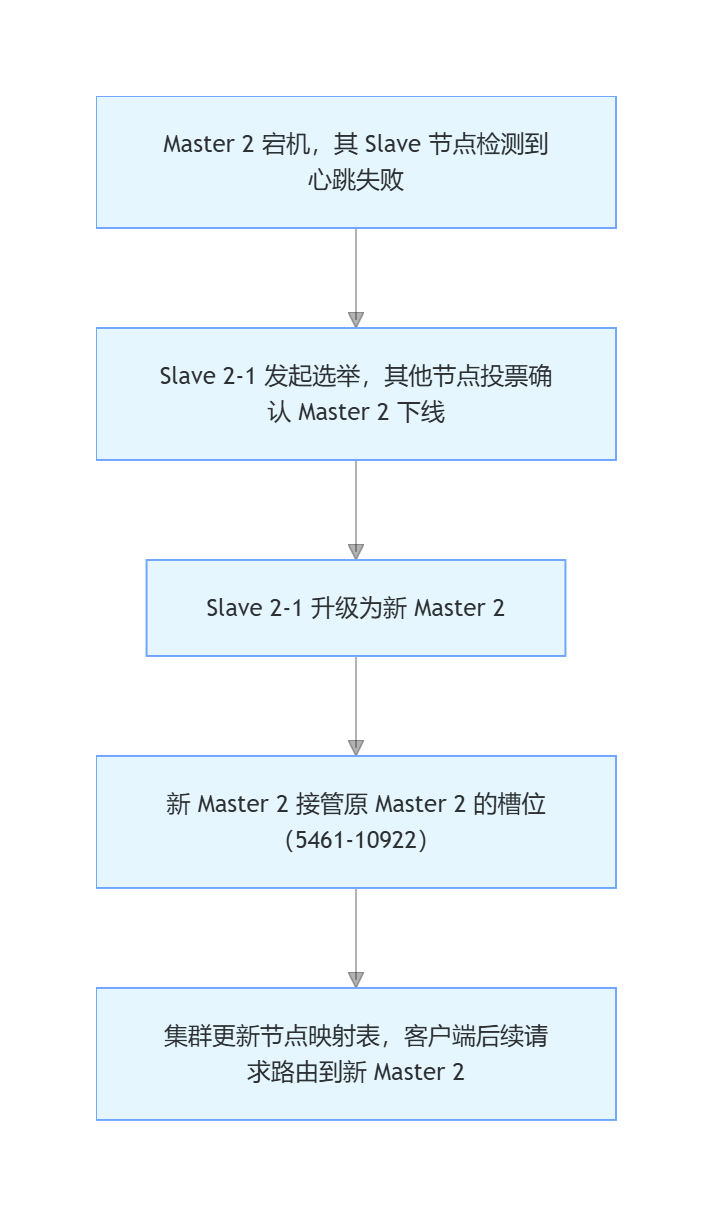 [Master 2] 负责槽位 5461-10922 → 从节点 Slave 2-1、Slave 2-2