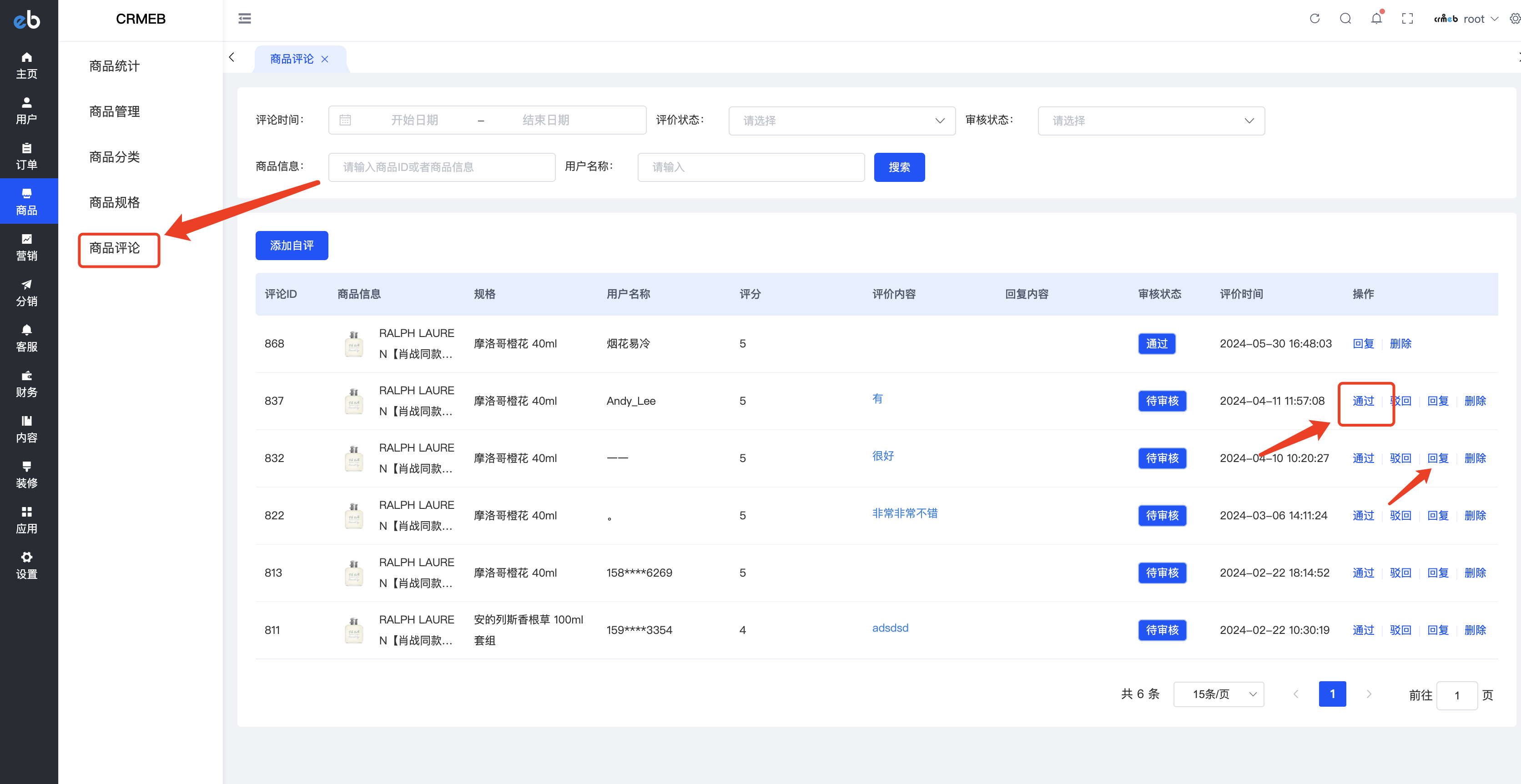 也可以在商品>商品评论中,管理所有商品用户评论。