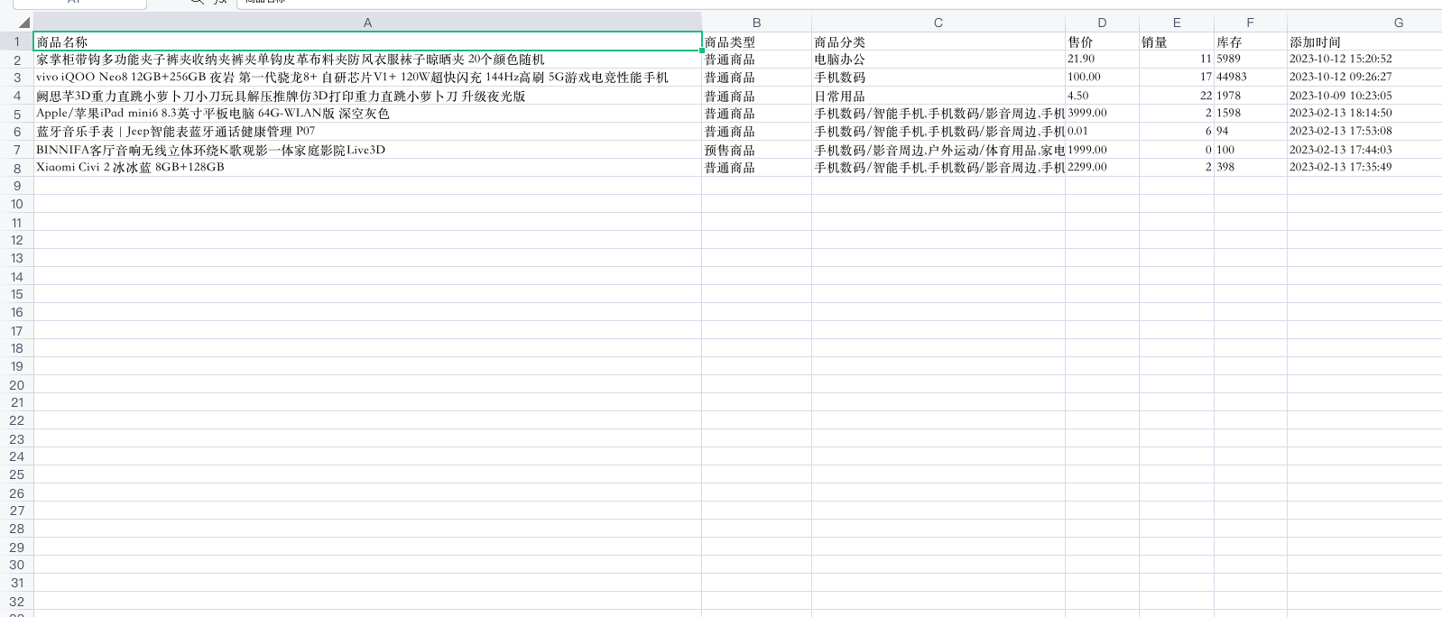 批量导出功能,可以导出商品的基本信息