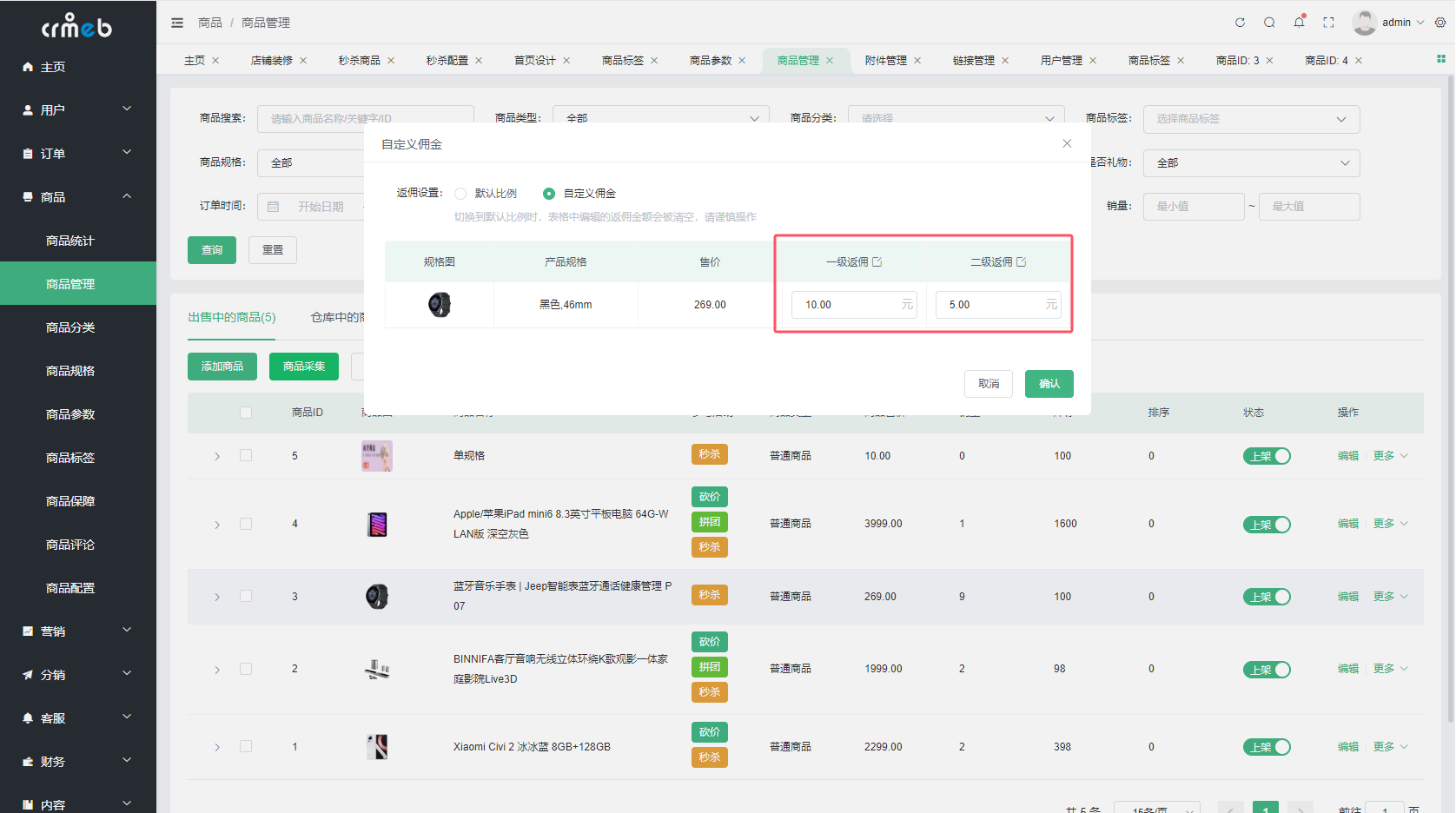 <>7 、佣金会员价设置