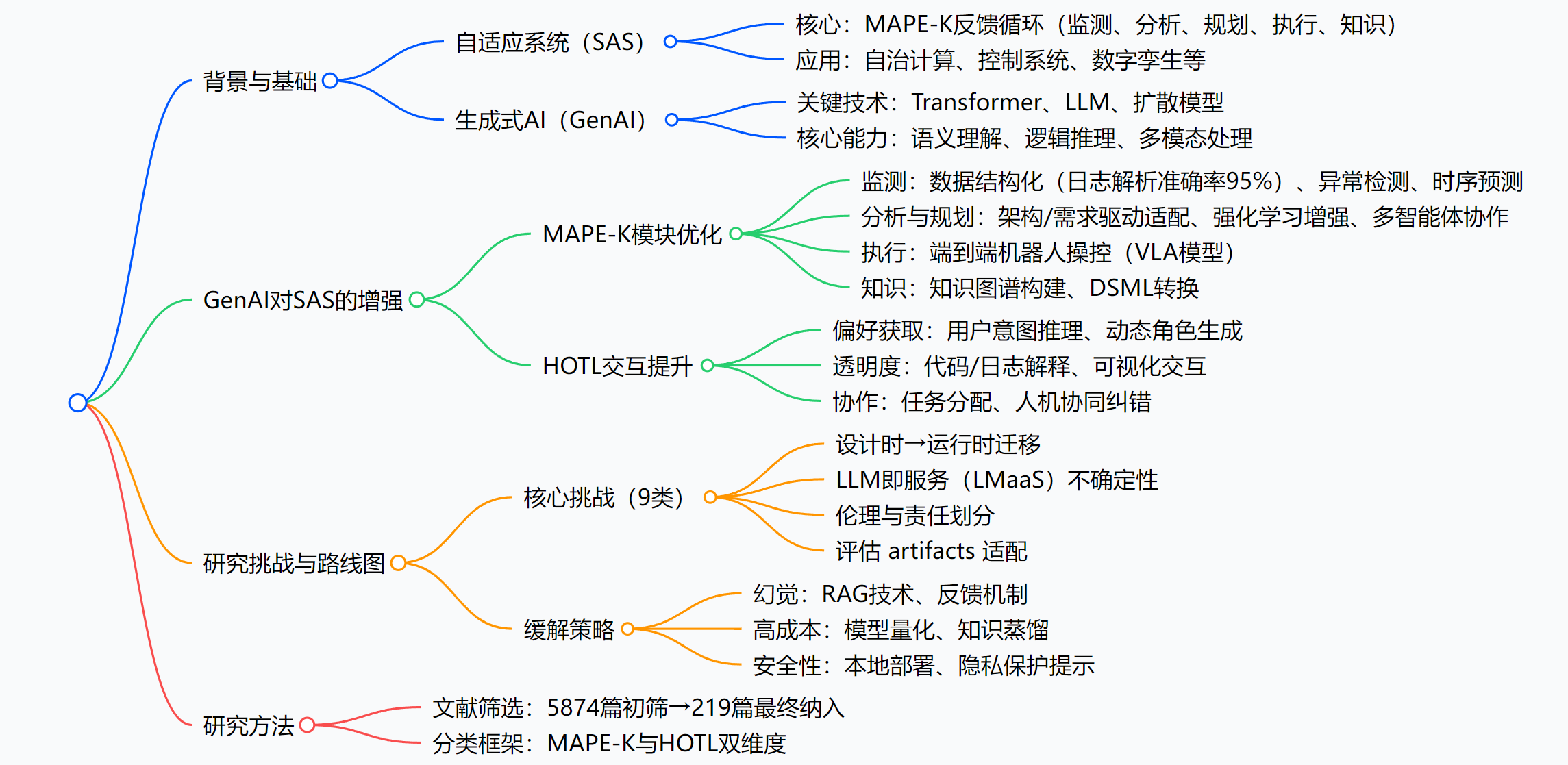 | 筛选标准 | 1. 关联GenAI核心技术;2. 契合MAPE-K或HOTL主题;3. 排除纯技术优化、非SAS相关研究 | 最终纳入219篇 |
