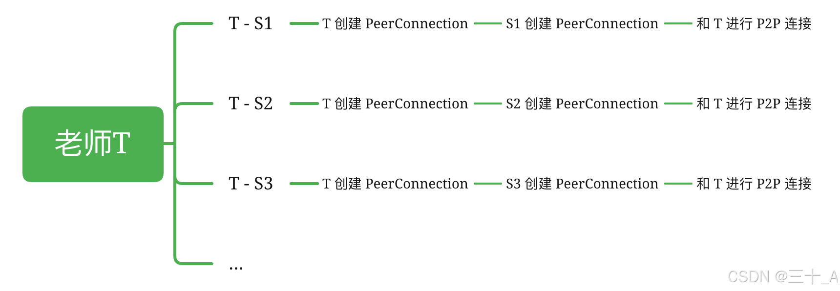 - 多个学生 = 老师端维护 N 个 RTCPeerConnection
