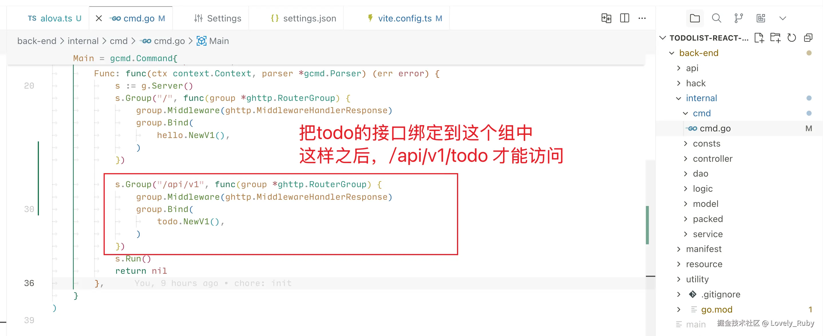 目前后端是没有接口路由分组的,所以来改一下后端,让前端以后通过 /api/v1/todo 来访问