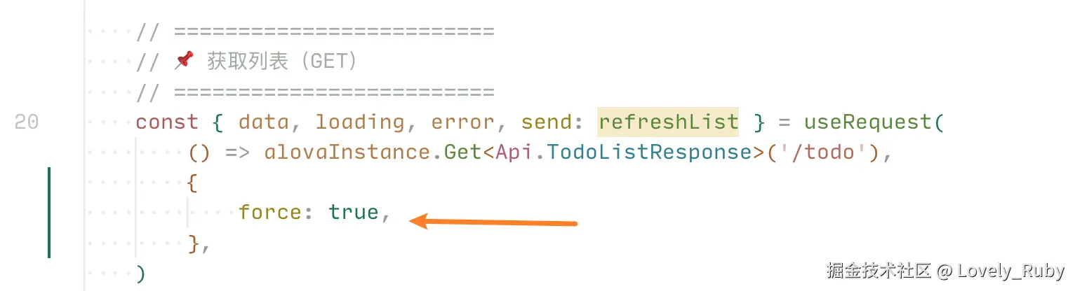 查了一下官方文档, 这里有个强制请求,我可以在 Alova 中配置一下这个接口