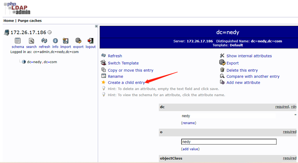Login DN:cn=admin,dc=nedy,dc=com