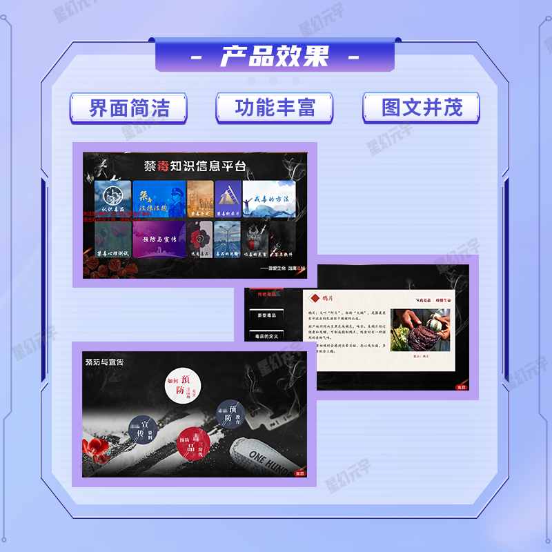 该产品矩阵以 "知识为核、互动为翼、警示为要" 为原则,构建起四大类功能互补的禁毒科普内容体系,实现禁毒宣教的全方位覆盖: