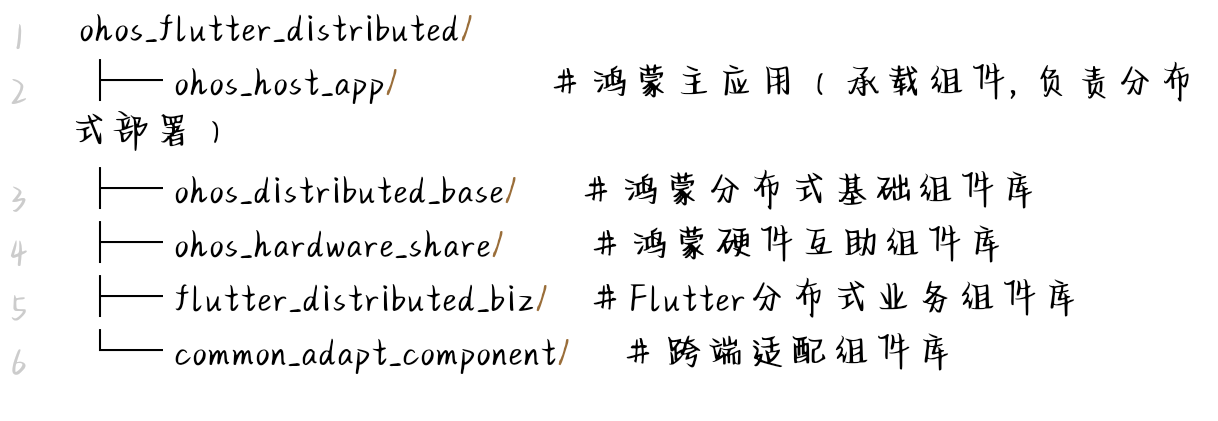 - 开源鸿蒙生态:DevEco Studio 4.3+、开源鸿蒙SDK(API Version ≥ 12)、 ohos_distributed_component: ^3.1.0 (分布式组件适配框架);