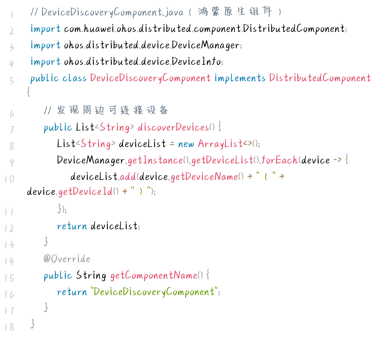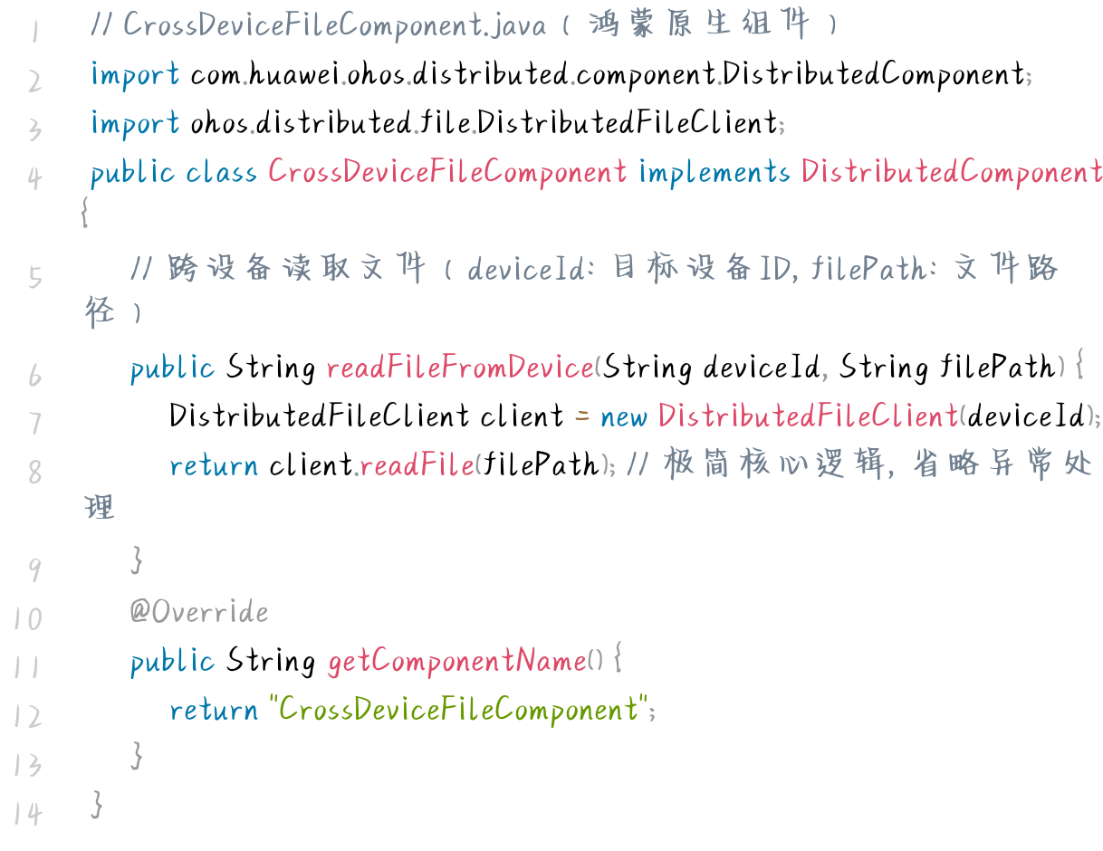 - 命名规范:组件命名需包含"分布式"或"CrossDevice"标识(如 CrossDeviceFileComponent ),明确组件功能属性;