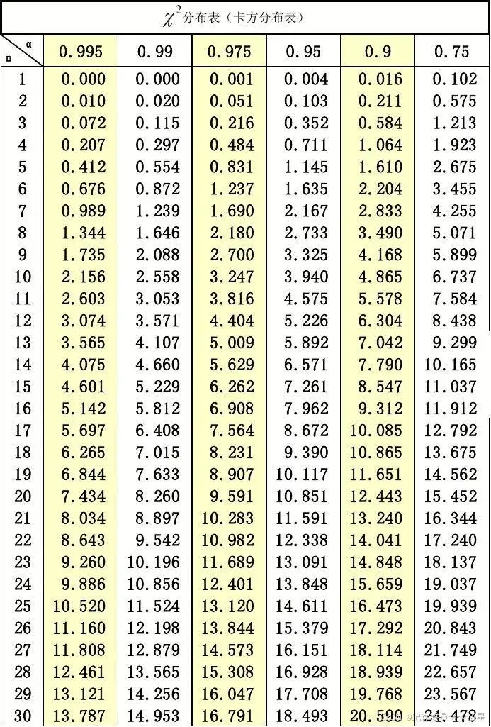 这个临界值是在一个叫卡方分布的表格中查出来的。
