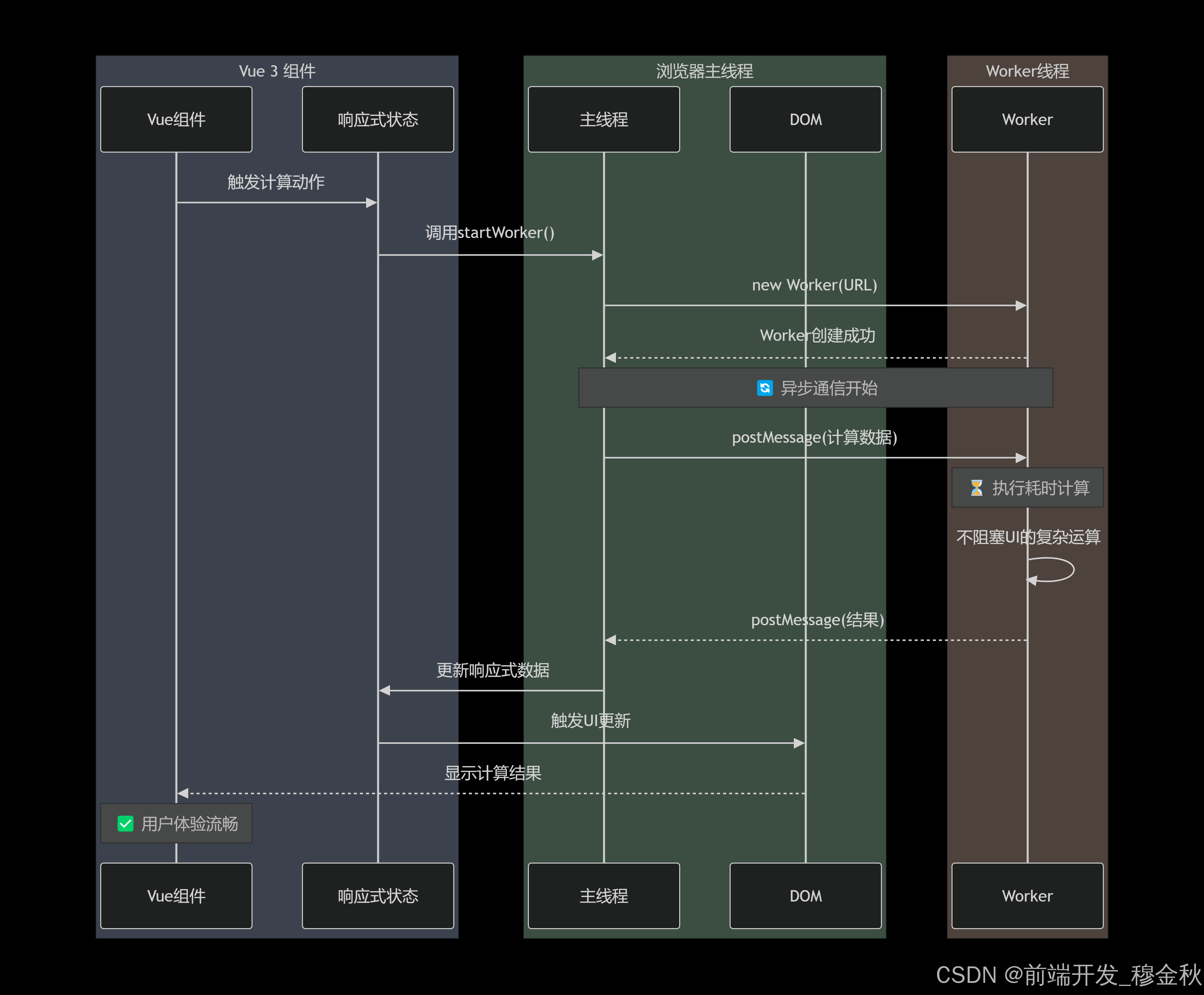 - ✅ 可以传递:基本类型、对象(通过结构化克隆)、ArrayBuffer(可转移所有权)