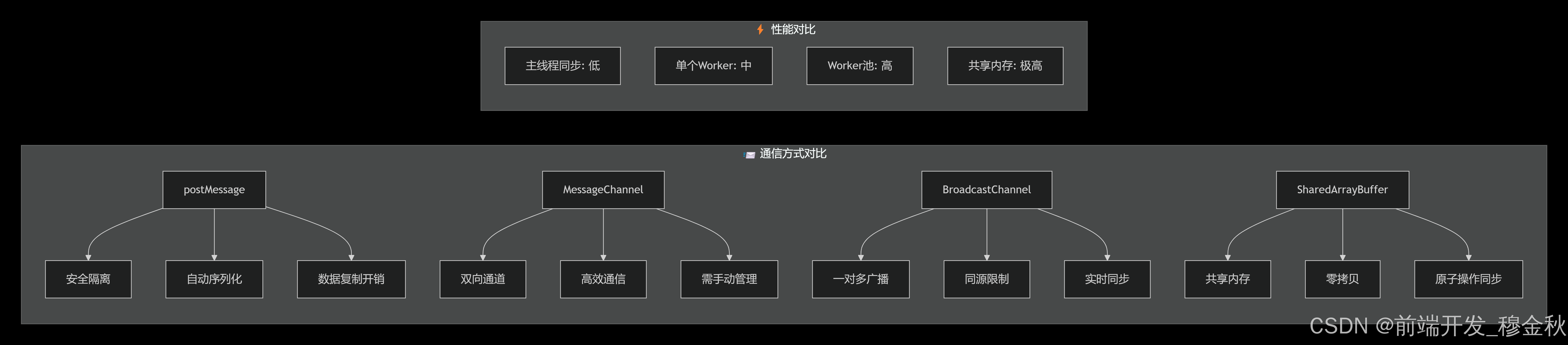 SharedArrayBuffer:共享内存,零拷贝但需要同步