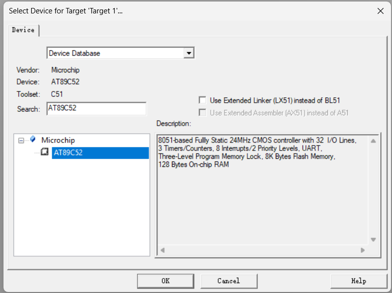虽然单片机的型号为IAP15F2K61S2,但他也是51系列单片机,我们也可以选择AT89C52作为替代。如果用IAP15F2K61S2更好,但我们要去STC-ISP添加它的器件支持包。