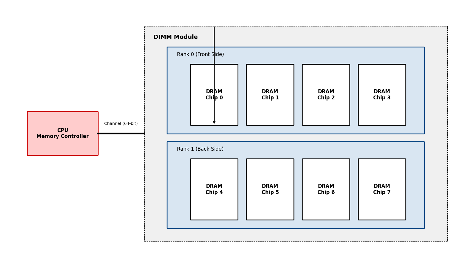 - Chip (颗粒): 单个 DRAM 芯片。