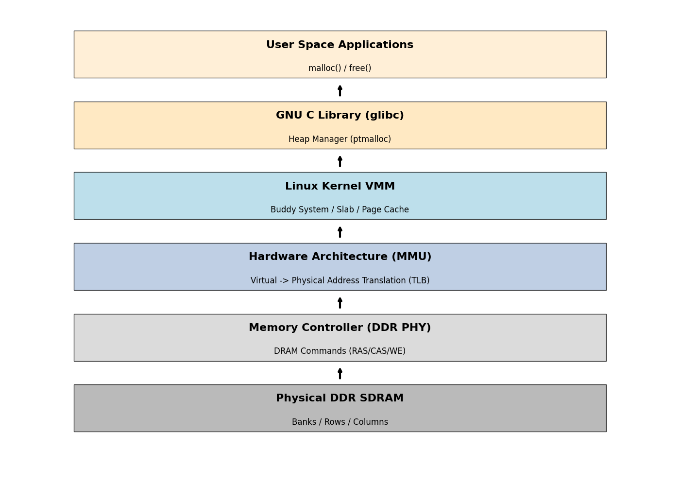 memblock(启动早期)和buddy system(伙伴系统,启动后)管理物理页框(Page Frames)。 - Virtual Memory: 通过 MMU 页表(Page Tables)将虚拟地址映射到物理地址。