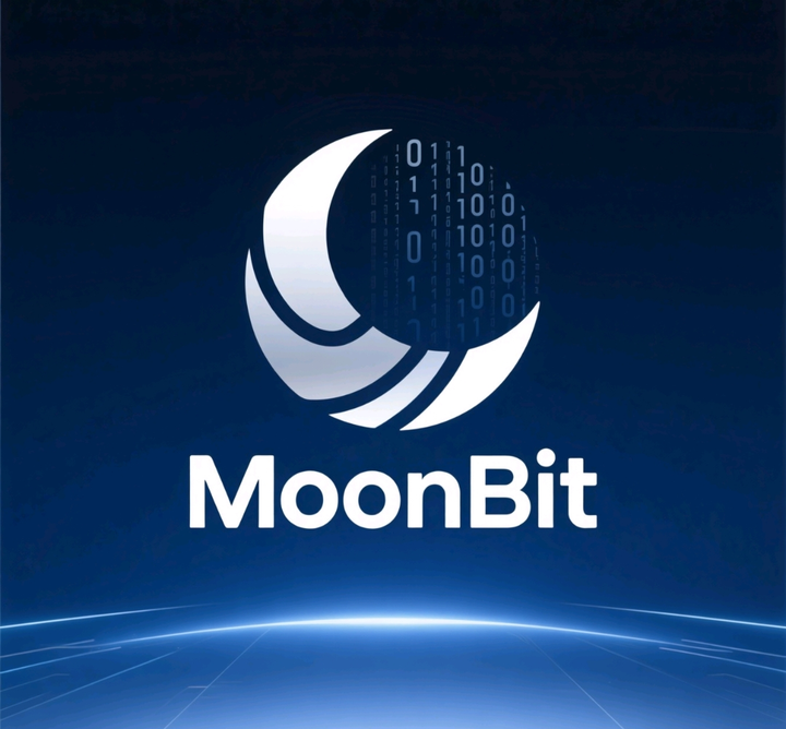 "采用抽象月亮轮廓结合二进制元素,线条简洁。主色为深蓝与银白渐变,呈现科技与稳重感。"