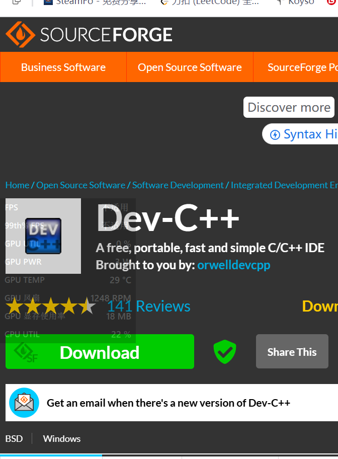 https://sourceforge.net/projects/orwelldevcpp/下载网址