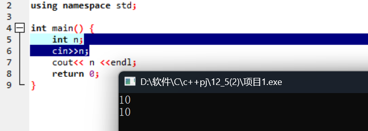 cin在std命名库中是输如,会自动识别输入的类型,cin>>,符号不能用错,表示左边的数据通过>>输入给右边的变量。