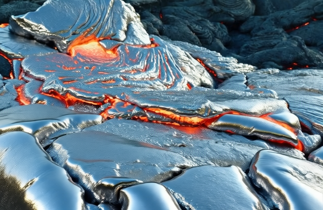 "prompts" : "Change the material of the lava to silver.",