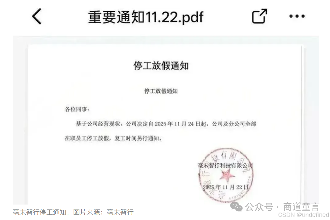 毫末智行的停摆,标志着自动驾驶行业正式进入残酷的淘汰赛阶段。它绝非孤例,而是整个"中间层"智驾供应商集体困境的缩影。2025年,已然成为车企孵化智驾公司的关键调整之年,甚至被视作部分企业的倒闭之年。