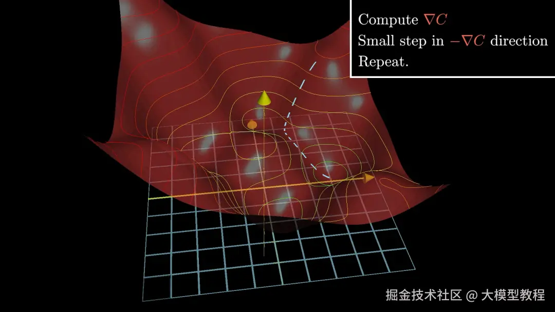 上面我们知道用梯度下降的方式调节 w 和 b,对于神经网络也是一样的数学原理,需要通过链式法则(Chain Rule)一层一层反向调整所有权重。