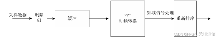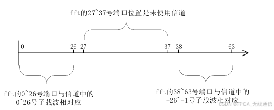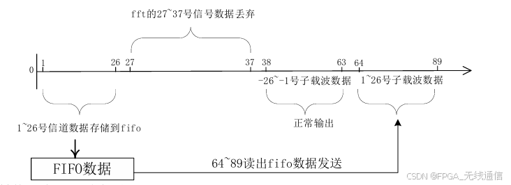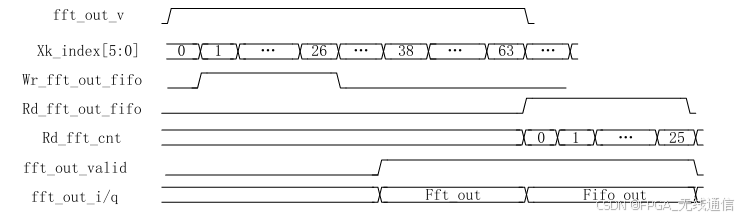 输处的数据给到FFT IP核,从FFT 输出后进行重新排序,先将 1~26存入 fifo;待FFT 输出到第63个采样点后,将FIFO数据读出,完成重新排序;