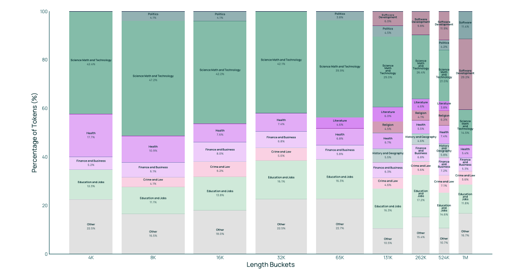 虽然我们接受探索结构化"任务"数据(例如 QA 对、聊天实例)用于基础模型训练,但仅在中期训练的后期阶段(§3.5)和长上下文扩展(§3.6)中使用。任务数据即使通过合成生成,也往往无法满足影响预训练阶段所需的数据池大小,而且任务数据往往对评估结果影响过大,可能干扰其他来源的数据消融实验。