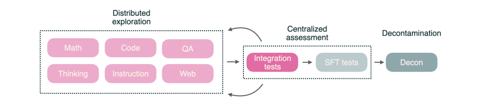 -- 一个新的两部分方法框架,将 1)对单个数据源进行轻量级、分布式反馈循环 与 2)集中式集成测试相结合,以便评估候选混合物在基础模型质量与后训练能力上的表现;