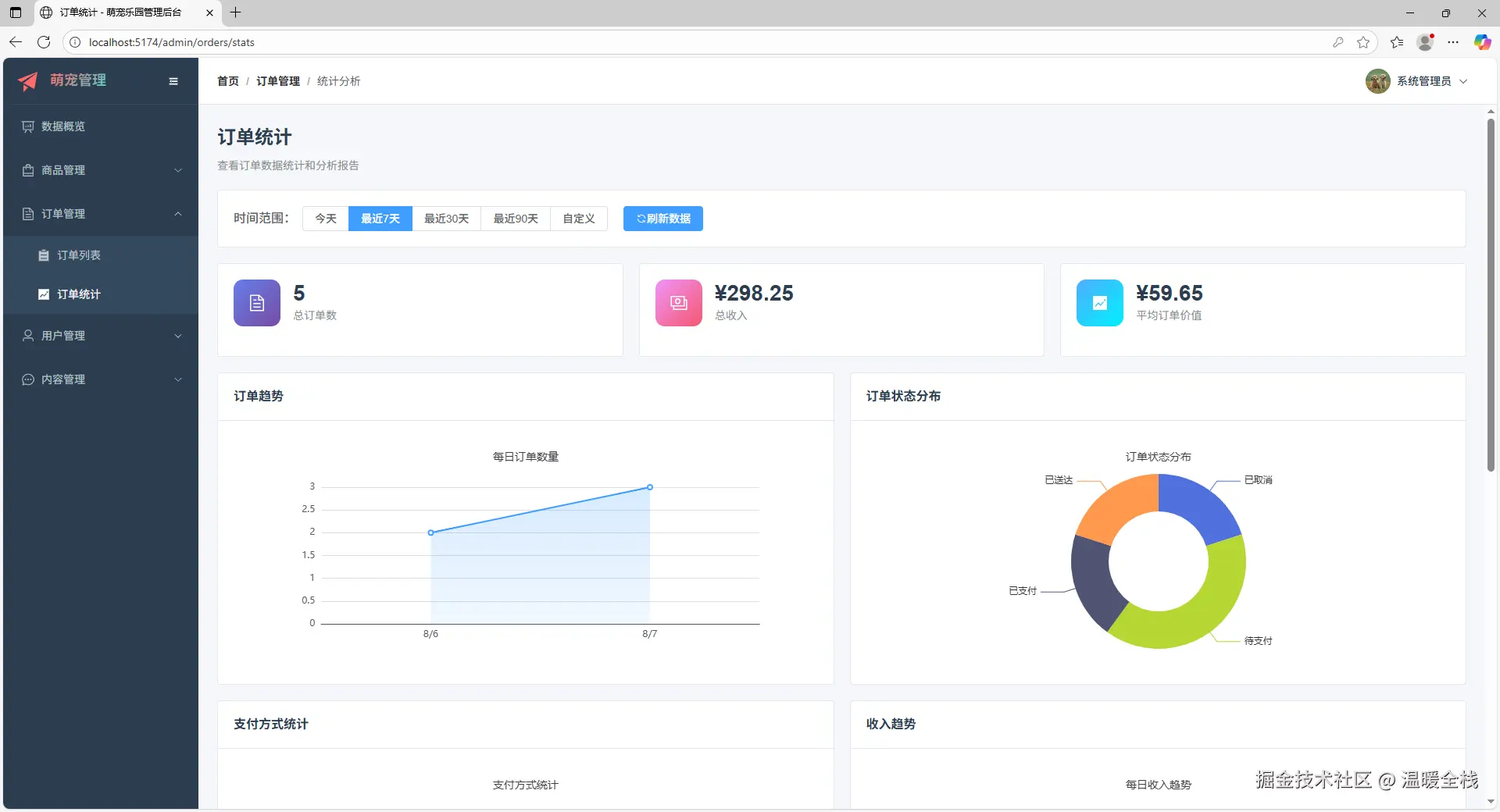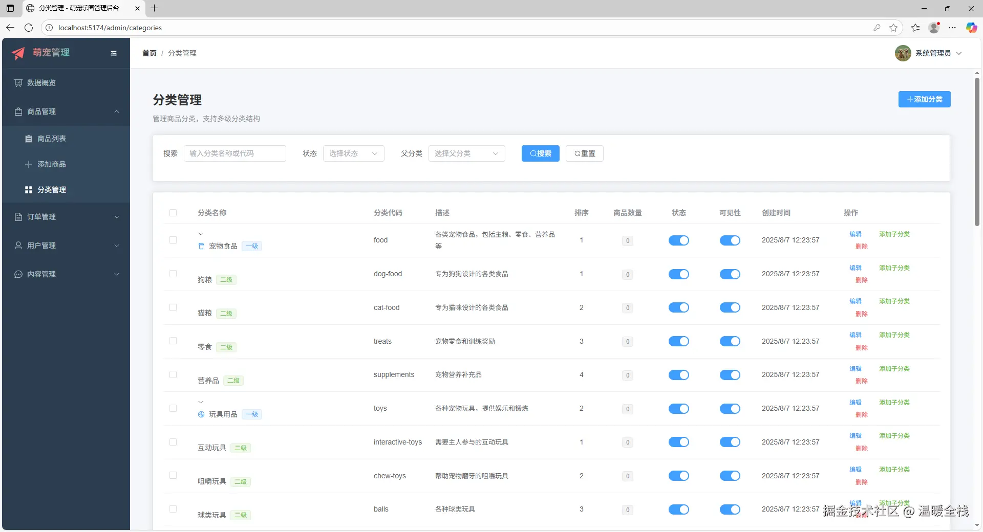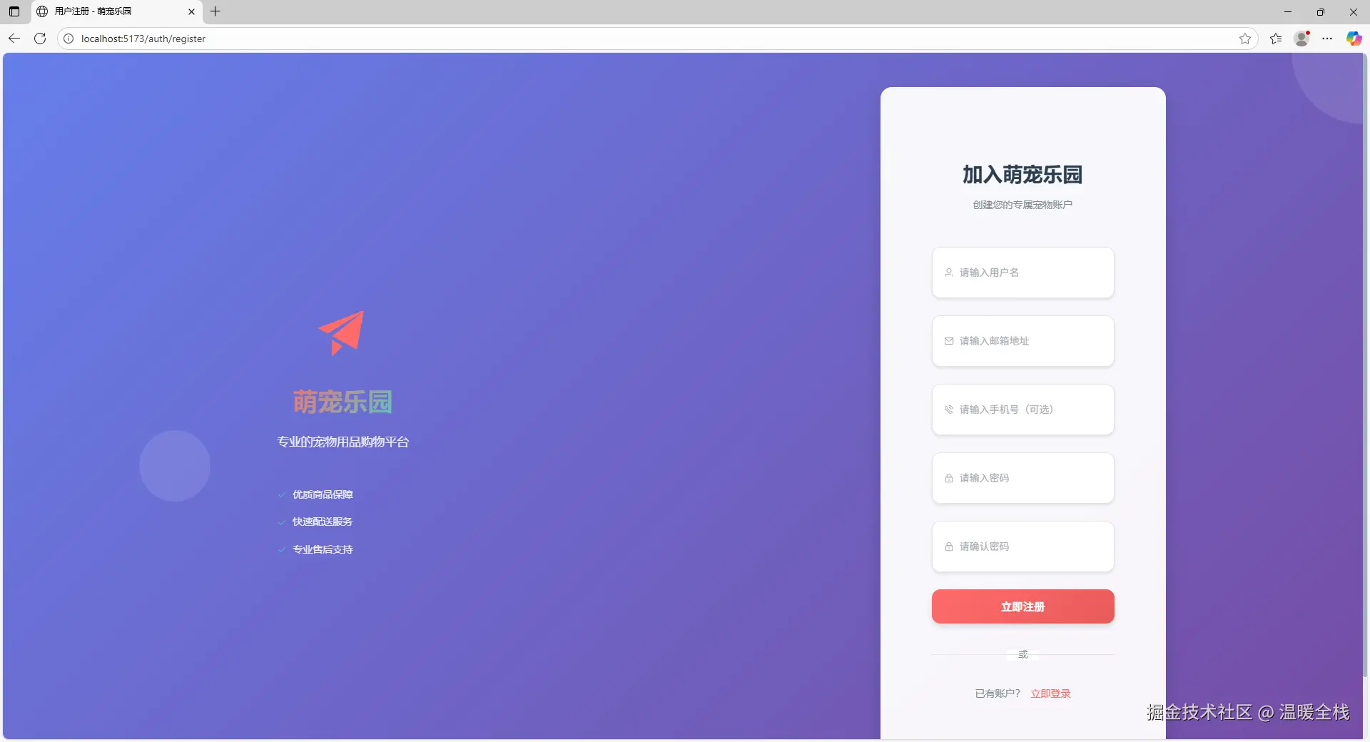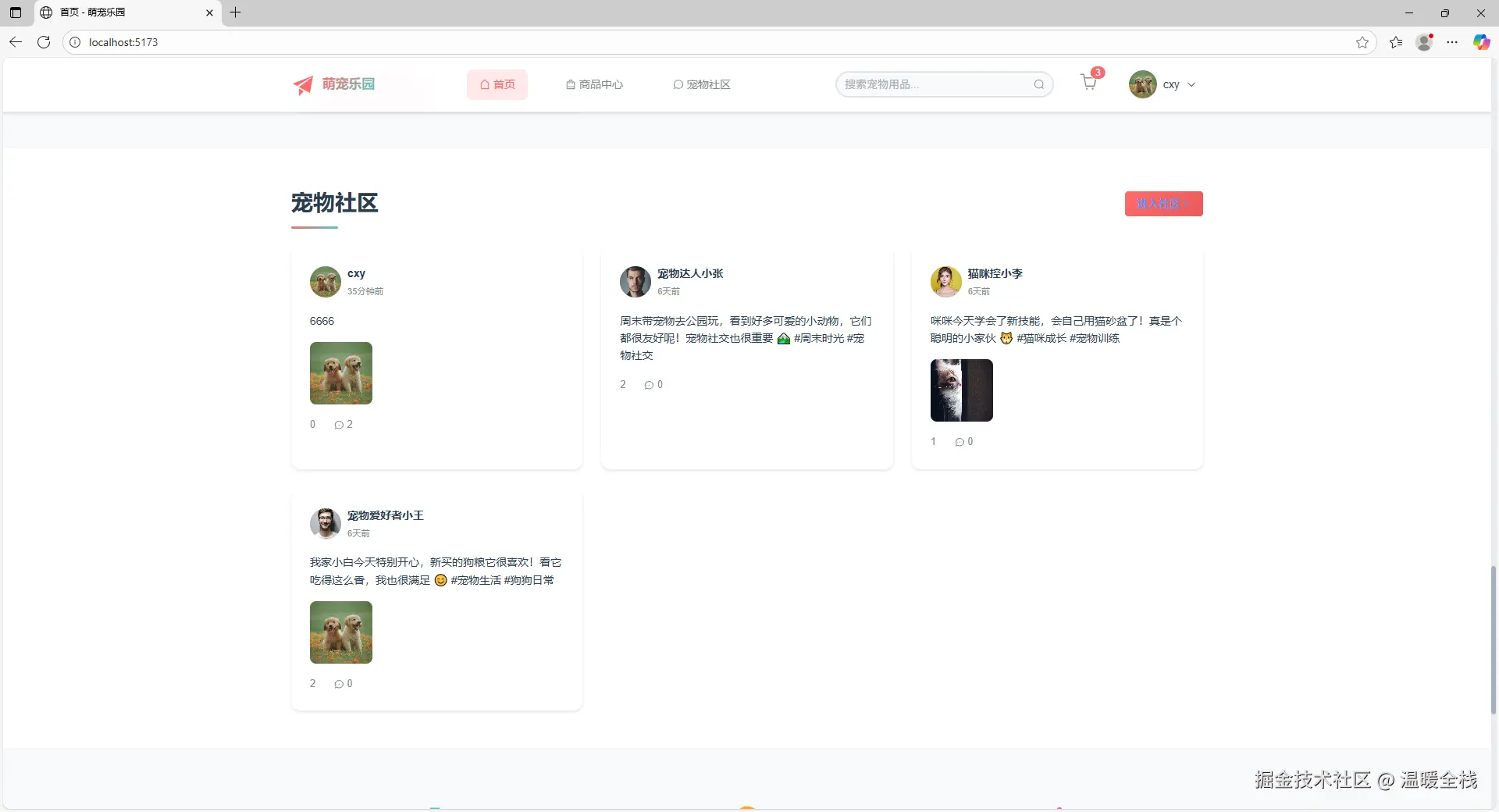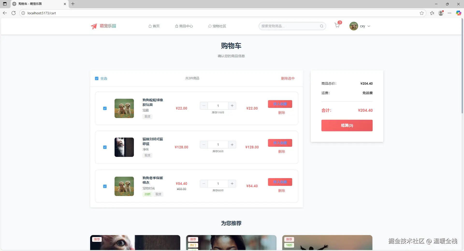随着互联网技术的快速发展和宠物经济的持续升温,宠物用品电商平台已成为宠物主人购买宠物用品的主要渠道。设计并实现了一个基于Vue3和Node.js的全栈宠物用品购物系统,该系统采用前后端分离架构,包含用户购物系统和后台管理系统两个子系统。