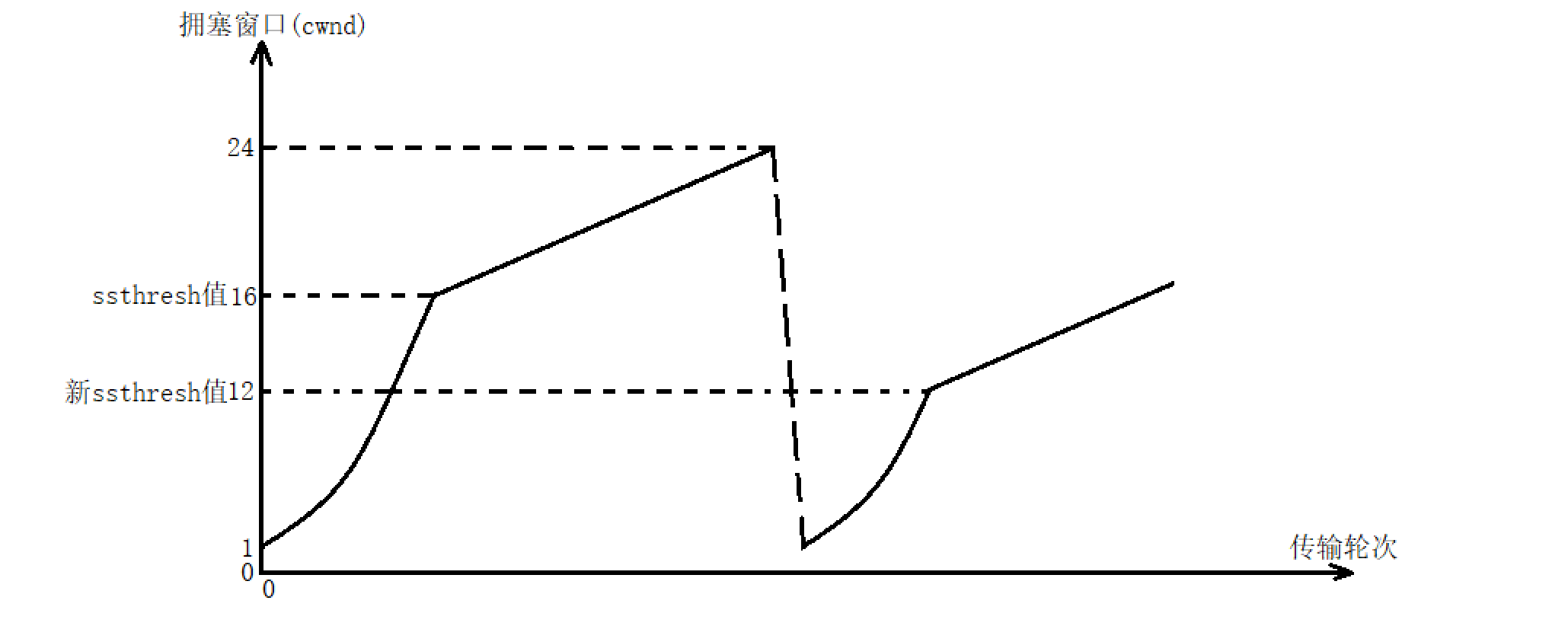 上图中的ssthresh它是慢启动阈值,用于划分慢启动和拥塞避免,默认情况下是一个很大的值。