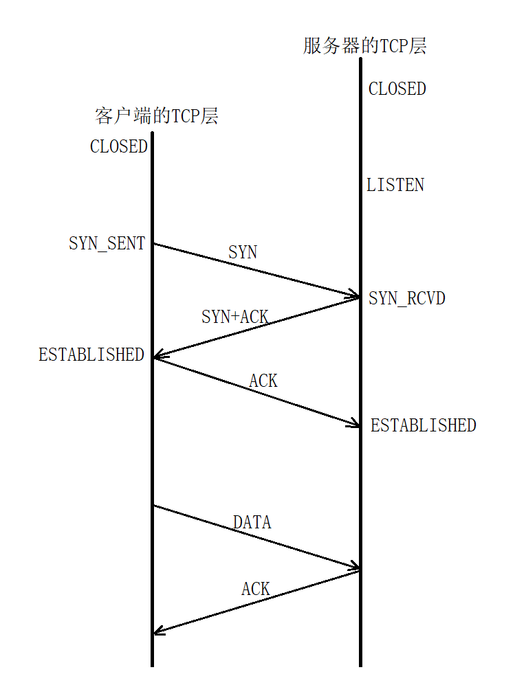 预备:服务器调用socket()创建套接字此时该fd对应的TCP状态为CLOSED,然后调用bind()绑定IP和端口号这时依然是CLOSED,然后调用listen()这时状态变为LISTEN状态,开始监听请求。客户端调用socket()创建套接字并TCP状态为CLOSED。
