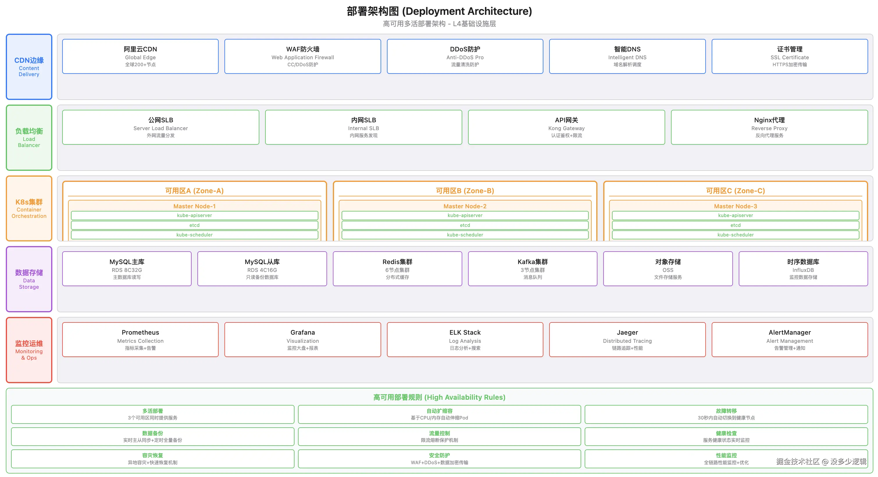 - Role (角色):物理机/虚拟机、Kubernetes Pod、负载均衡器 (LB)、防火墙、CDN、多活机房。