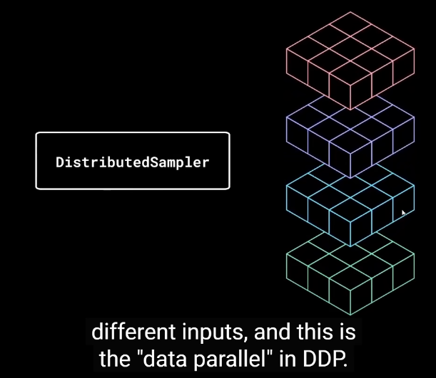 DDP将dataloader换成distributed sampler。把一个batch的内容分发给多个GPU