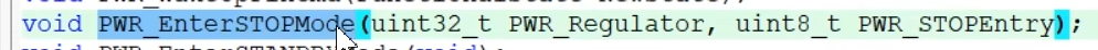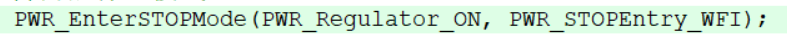 PWR_EnterSTOPMode(PWR_Regulator_ON, PWR_STOPEntry_WFI);