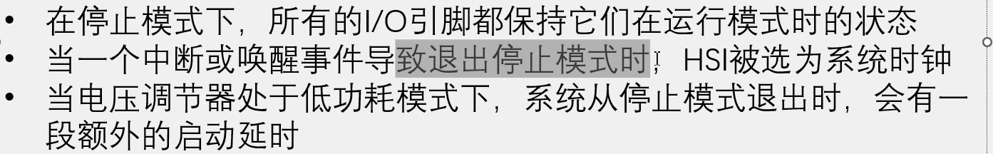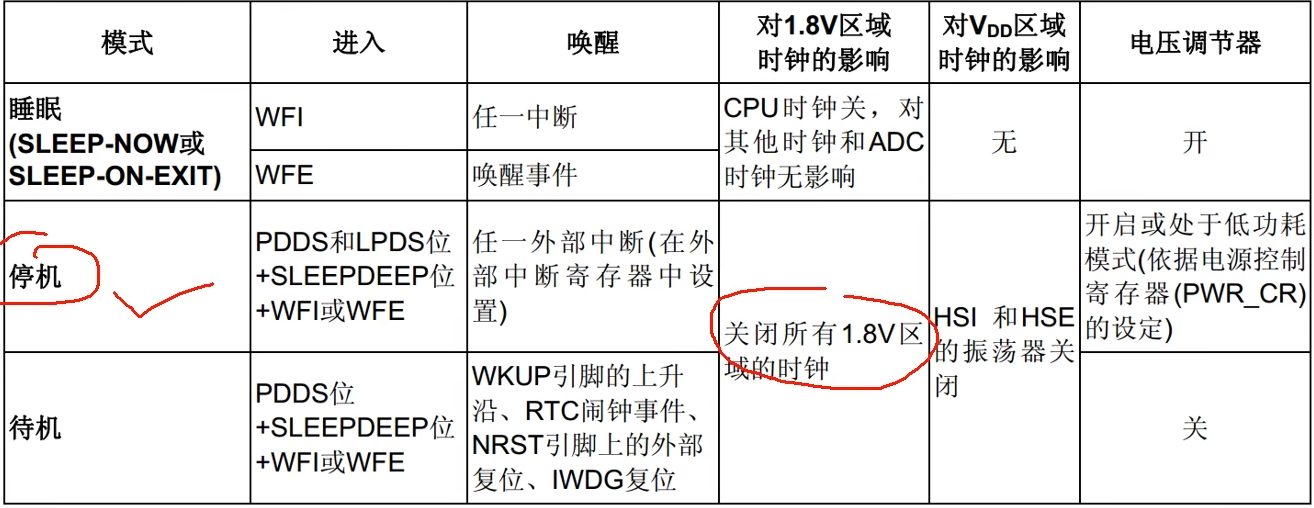 在停止模式下1.8V区域的时钟关闭。CPU和外设都没有时钟了。但是外部中断是不需要时钟的。这一点从代码中也可以看出来。